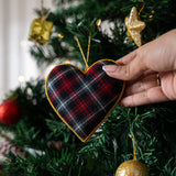 Embroidered Christmas Ornament - Heart with Golden Bow