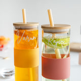 Please note: The tumbler comes with a plastic straw. Whether you drink smoothies, iced tea, juices, or water, everything tastes better in our Personalized Glass Tumbler with Bamboo Lid and Plastic Straw. The Silicone grip helps you to hold it carefully and reduce the chances of it slipping through your hands. This personalized tumbler is a stylish way of giving a gift or simply saying thank you to someone you love.