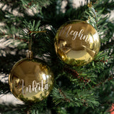 Give your Christmas tree a personal touch with our stunning personalized baubles featuring your name or the names of your loved ones. The statement baubles will elevate your decor. Comes with golden string. The red bauble is personalized in gold vinyl and the gold bauble is personalized in white vinyl. Sold individually.