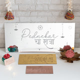 Welcome Bappa home in style with our Personalized Ganesha Name Plaque! Perfect for placing at your mandap or entrance, this beautiful sign celebrates your home’s very own Raja this Ganesh Chaturthi! Comes with two holes at the top, in case you want to hang it. Sold individually.