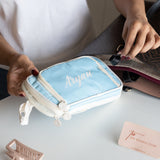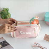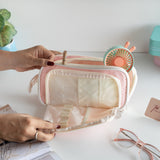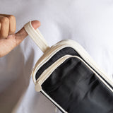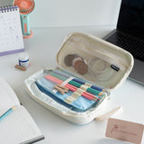 Organize your essentials with our large-capacity expandable pouch featuring multiple compartments for easy sorting. The wraparound expansion zipper offers extra storage when needed, while front pen slots and an internal mesh pocket keep small items secure and accessible. With the expandable zipper, transform it into a spacious storage pouch for makeup brushes, art supplies, or travel essentials. Designed for versatility, this pencil case also works as a tech accessory organizer for cables, chargers, earphones, and USB drives. Comes with a lanyard to grab on the go. Unzip the bottom compartment to expand it into a roomy pouch for makeup brushes, art supplies, or everyday tools, perfect for school, office, or travel. The pouch is waterproof. Sold individually.