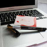 Our personalized Satin Finish Black Pens are perfect for everyday use. Practical yet stylish, everyone will want to know where you got this gorgeous pen! A ball point pen that writes as smoothly as a feather. Make for a great office gift for a boss, co-worker, family or friends. The cap is magnetic. Ink colour: Blue. Sold individually.