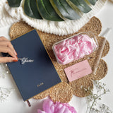 For the special someone in your life, the Keepsake Hamper is the perfect gift! This unique hamper contains all the essentials for a memorable experience! Our Keepsake Hamper is definitely one for keeps! No matter, who you give it to, it will be loved! It includes 1 Can Glass With Straw - Signature Font, 1 Personalized Name Cut Keychain - Clear and 1 Golden Edge Softbound Notebook - in Blue or Black. The notebook contains ruled pages. Exclusively Made in India