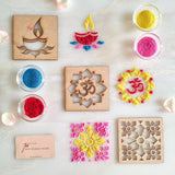 Rangoli making made easier for everyone with our Rangoli Stencils. These Stencils saves time & are very easy to use. Fill colours and enhance the beauty of your entrance, gateway and temples with these reusable Rangoli stencils. Made in India. Please Note: The colours are not included.